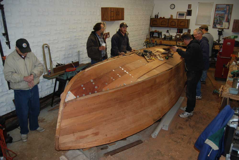 People who attended. Gretchen Dosch, Tom Englart, Dan Kinnard, Art Lowrie Chuck Niceley, Bob Miklos, Erik Miklos, Frank Miklos, Paul Miklos, Tom Shanor, John Woodruff, and Dale Zubik. At the workshop we dry fit the outer bottom on Chuck's 1941 Garwood 16' Runabout. After the workshop we will be meeting at a Allegheny Mariner Restaurant for dinner and a membership meeting... This meeting is to elect officers for the next year... On the way to the meeting we stopped and looked at some vintage boats in storage. Chuck Niceleys 1957 Chris Craft 30' Cruiser. Also looked at Jared Star's 1952 Chris Craft U22.