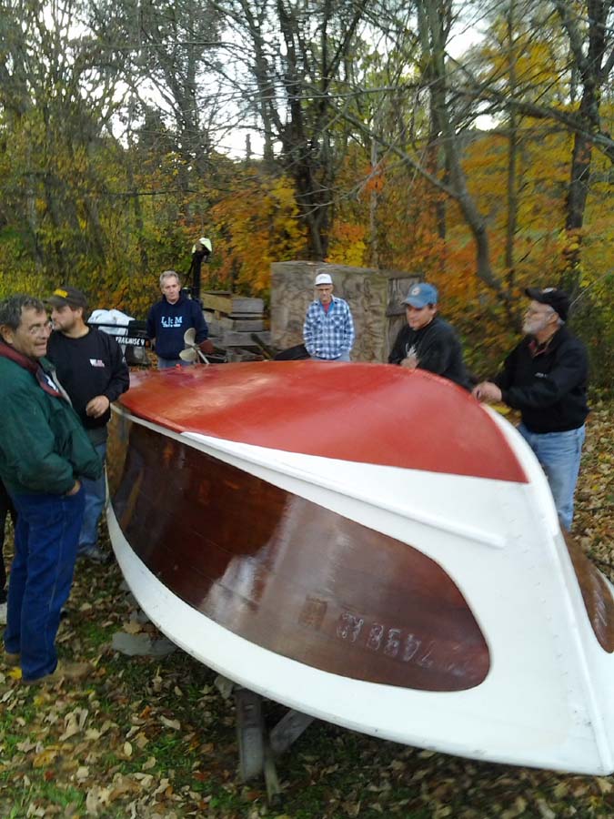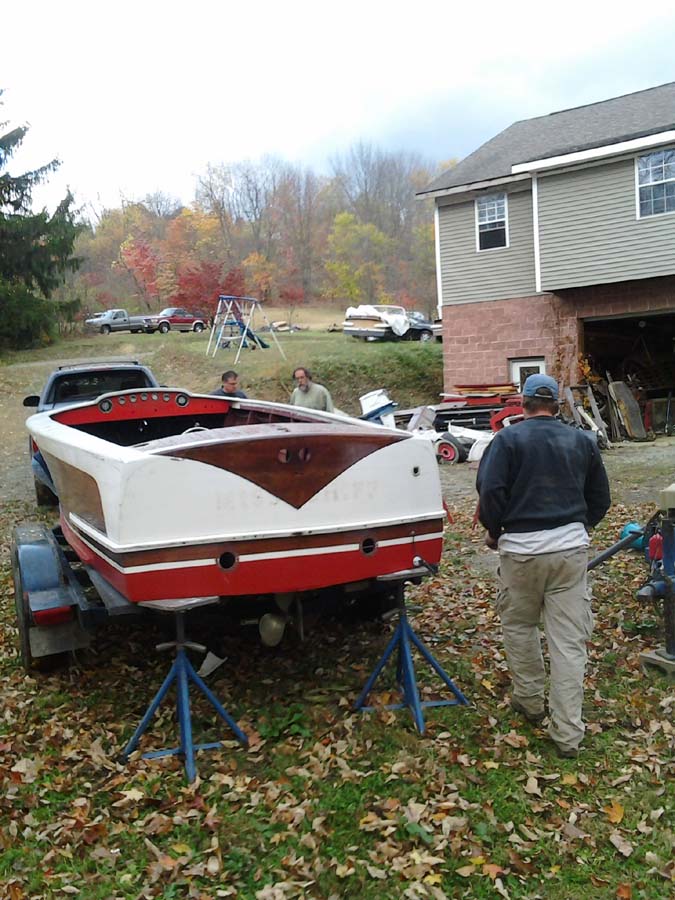 We worked on a 1927 Chris Craft 24' Triple Cockpit Runabout... We installed the planking on one side of the bottom... We also rolled over a 1955 Coronado.. Also discussion on two Century Resorter 17s...