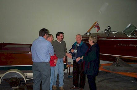 Erik, Bob, & Paul Miklos discuss with Tom Shanor about what to do with Tom's 1948 Chris Craft 20' Custom Runabout.