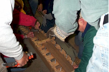 Chuck Niceley, Chuck Miklos & Doug Chassee setting up the bending jig for the transom frame.