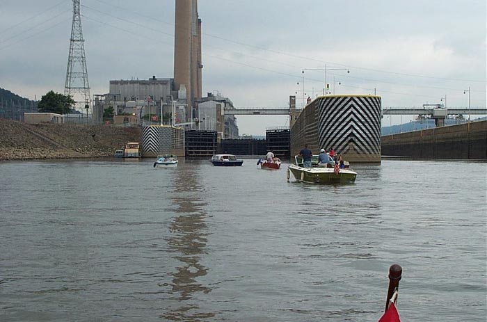 A total of thirteen people went on the trip. Tom Englart was at the docks but did not go on the trip. We got out of New Brighton almost on time. Paul & Alex Miklos met us for lunch at Bo's Lighthouse resturant in Tronto, OH, they came by car. The wether was good, there were no mechinical problems, and we hit the locks just right, we were back to New Brighton by 7:00.