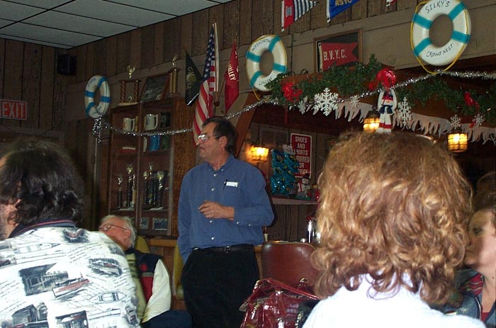 Blaine Koehler showing a slide show on the falls flooding on the Beaver River.