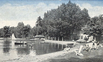 1950s The Elmwood hotel at Conneaut Lake park. The rental boats are some of the first MFG boats built. These boats were originaly open rowboats. But were too heavy. They were decked over and engines were added by Paul Scofield of the Conneaut Lake Nagavtion Co.