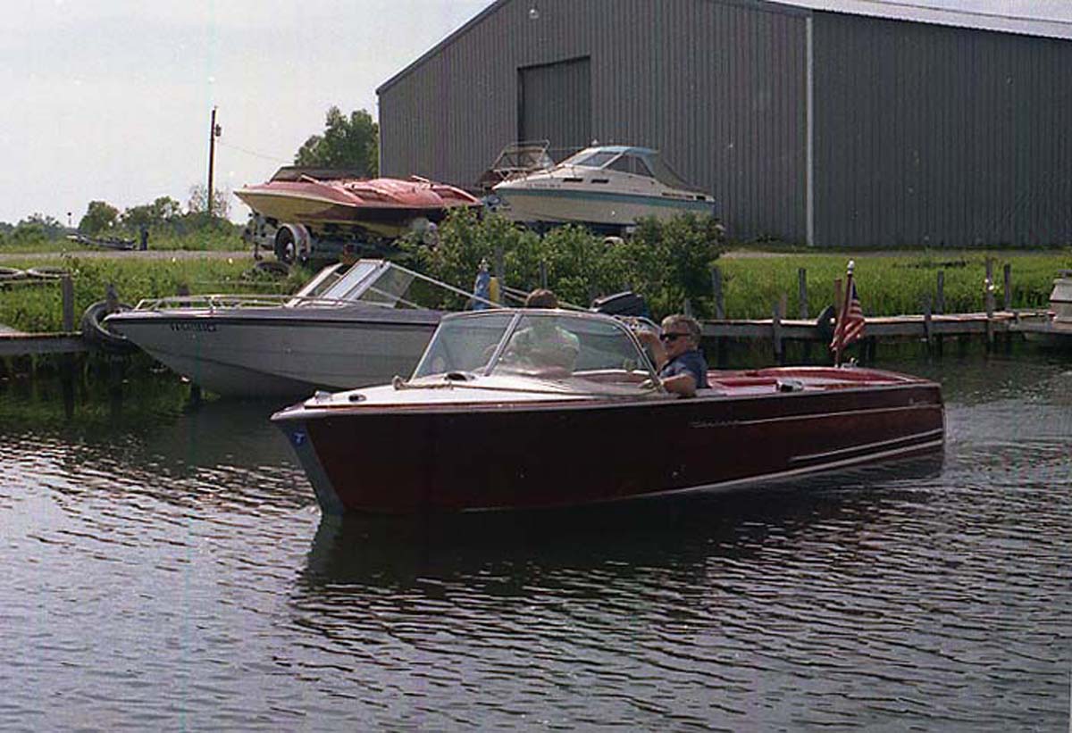 August 1997 photo. Getting the 1960 Arabian ready for the water and the first Conneaut Lake Classic Boat Show... Son Bob is also in the photo...