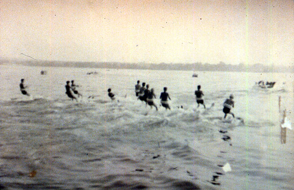 Pulling 11 skiers out of the water in the early 1960s. This boat also pulled 21 Skiers out of the water at a Ski Show held by the Conneaut Lake Ski Club.