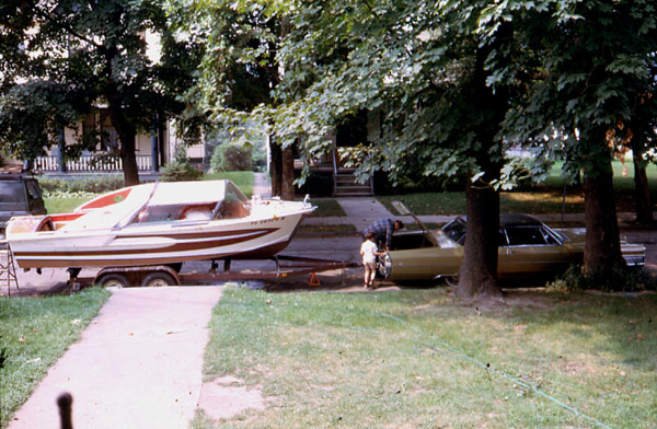 This is one year later, July 1968. That is my grandfather Charles L. Miklos, My dad Chuck, and me sticking my head out the window of the boat. The house in the center (not ours) was moved back and across the road in 1982. A much smaller house now stands there.