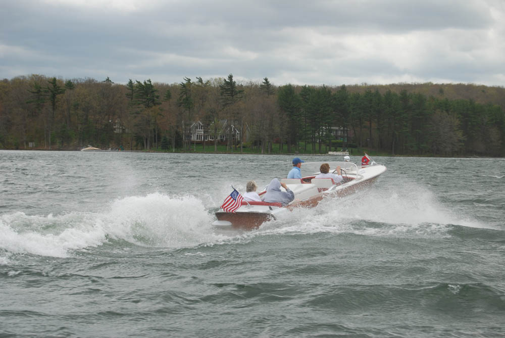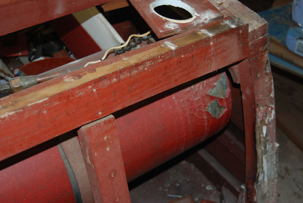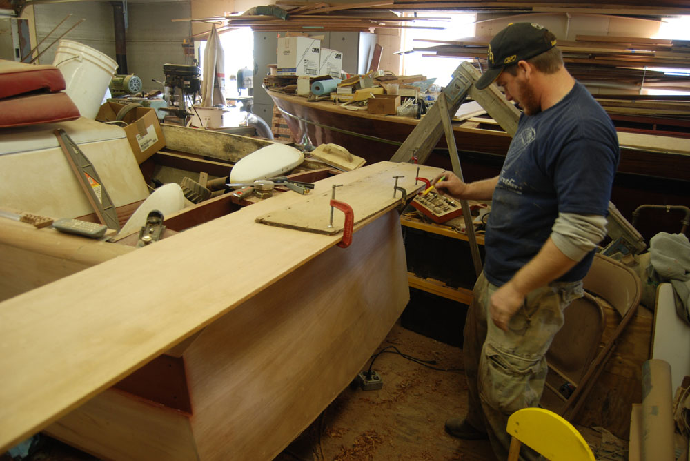 Last ride for the old owner! Making a tracing of the white paint scheme... Also we took measurements from fixed location on the hull.... Disassembly done outside... In the shop. The first 1965 hull number in pencil. CUF-18-0001 Corner transom frame rotted broke out when we took the boat apart. Fitting the new planks to the fiberglass aplaque. And new transom side frame in place. Replacing bad hull side frames... First two replacement planks on starboard side... Third pank being installed on starboard side... New plywood backer for fiberglass aplaque on the port side... The center transom frame... 058 was the 1964 number... 0001 was the first 65 number... the boat left the factory with 0002. New battens made for the transom.. A much better fit than the originals... Installing the second new plank on the port side... More plankwork starboard side... Fitting the second plank on the port side... More plankwork port side... Working on last plank on starboard... New transom planking installed. All of the new planking on port side sanded in to match in to old planking...The front deck wood is also stripped to bare wood. Plywood aplaque support painted... Original planking stripped and re-fastened... Port side... Working on new rear deck... New rear deck installed. The first hull number on this boat CUF-18-0001-C... We just found this when sanding in the rear deck... Feb 2011... It had been filled in at the factory with wood filler... The hull number the boat was shipped as... CUF-18-0002-C. This matches the hull plate in the motorbox... Also the hull card matches the original engine # and location shipped... Patterson on Deep Creek Lake, MD. The hull card from the factory... New wood being sanded in to match the old on the port side... We may have to replace one more hull side plank. The sheer plank in the bow... Installing the external chine on the starboard side...