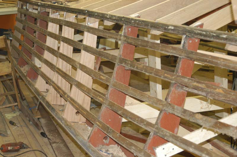 New transom frame-work being installed.