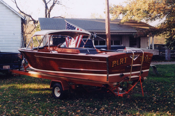 As the boat arrived, fall 2003. It was a fresh refinish but the owner did not like the names and numbers on the hull. They were vinyl and very large. The problem was there were several coats of varnish over the name. The name and registration numbers could not be removed without refinishing the hull. Other problems were the stripe on the hull side. Century stripes were tapered this was not. There was also engine problems.
