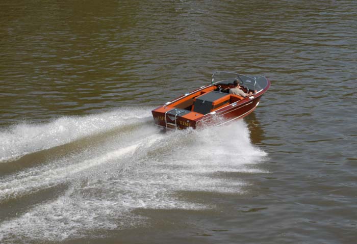 At Mt Dora Florida, March of 2004, where it won the best of show, (or it's equivilant). Note the water line it is straight for the first time in at least 20 years. This is one area that restorers screw up. We use lazer to establish correct waterline location.