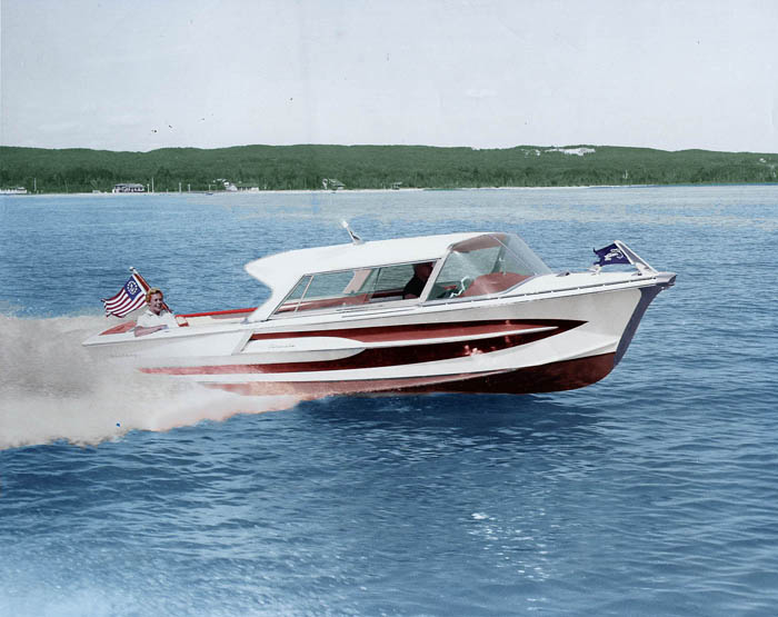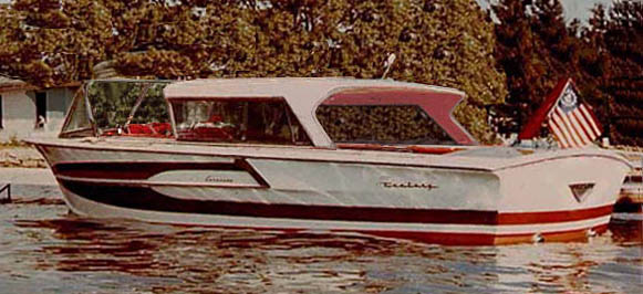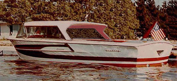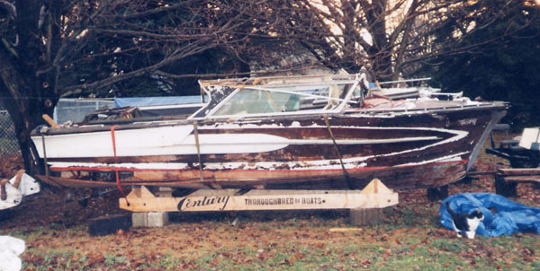 A plaque that a pervious owner , George H. Waring, had on the boat. George died in the mid 1990s. We talked to his widow and she said that they used the boat on Newfound Lake in NH. It was also used on a river that connected to the Atlantic Ocean. They bought the boat used at Calahan's Boat Yard at Weirs Beach, NH. This is on Lake Winnepsakee, NH. They traded in a Century Palomino in on the Coronado.