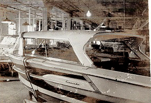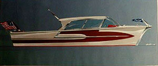 The boat at the Century factory. This boat was built with a unique hardtop. The reason is unknown but it was designed by Richard Arbib. The below rendering is his concept drawing.