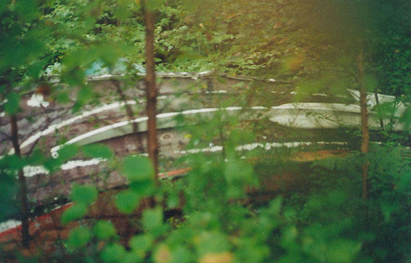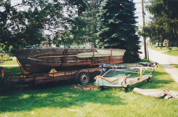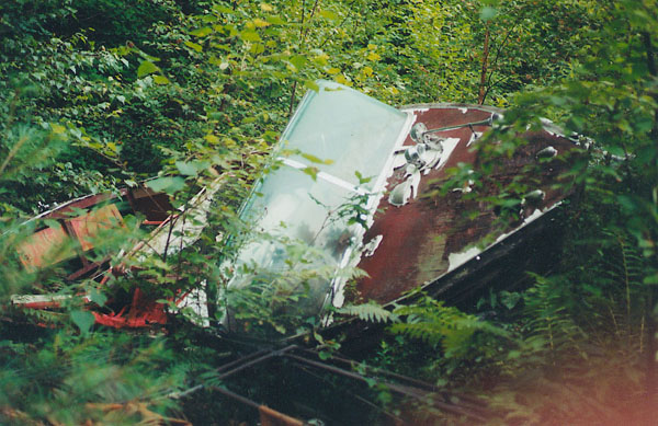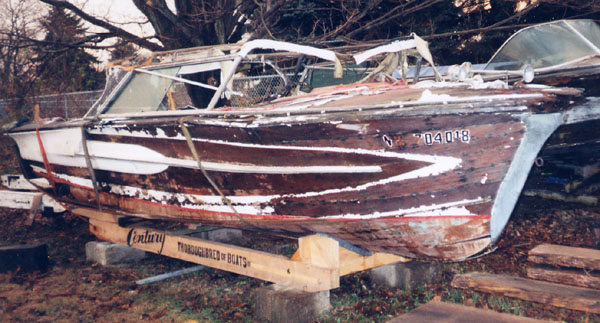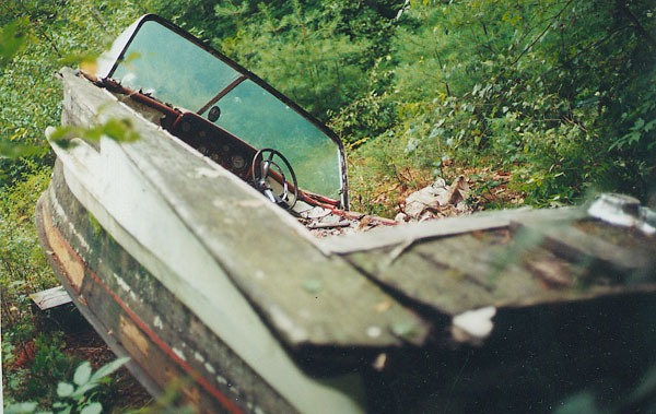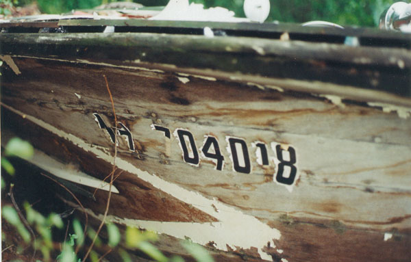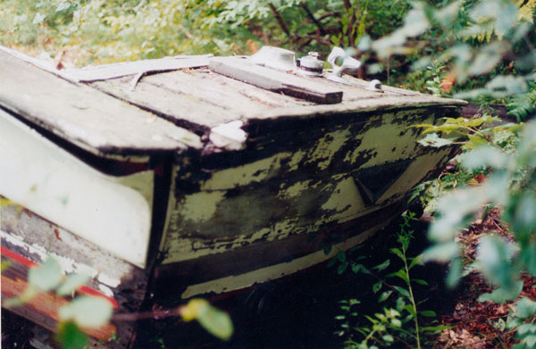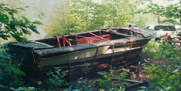 Upper two photographs, the boat as we found her, August 2003. Note the size of the trees.