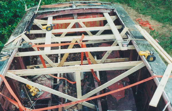 Some of the bracing that we had to install to get the boat home. Straps alone, were not enough.