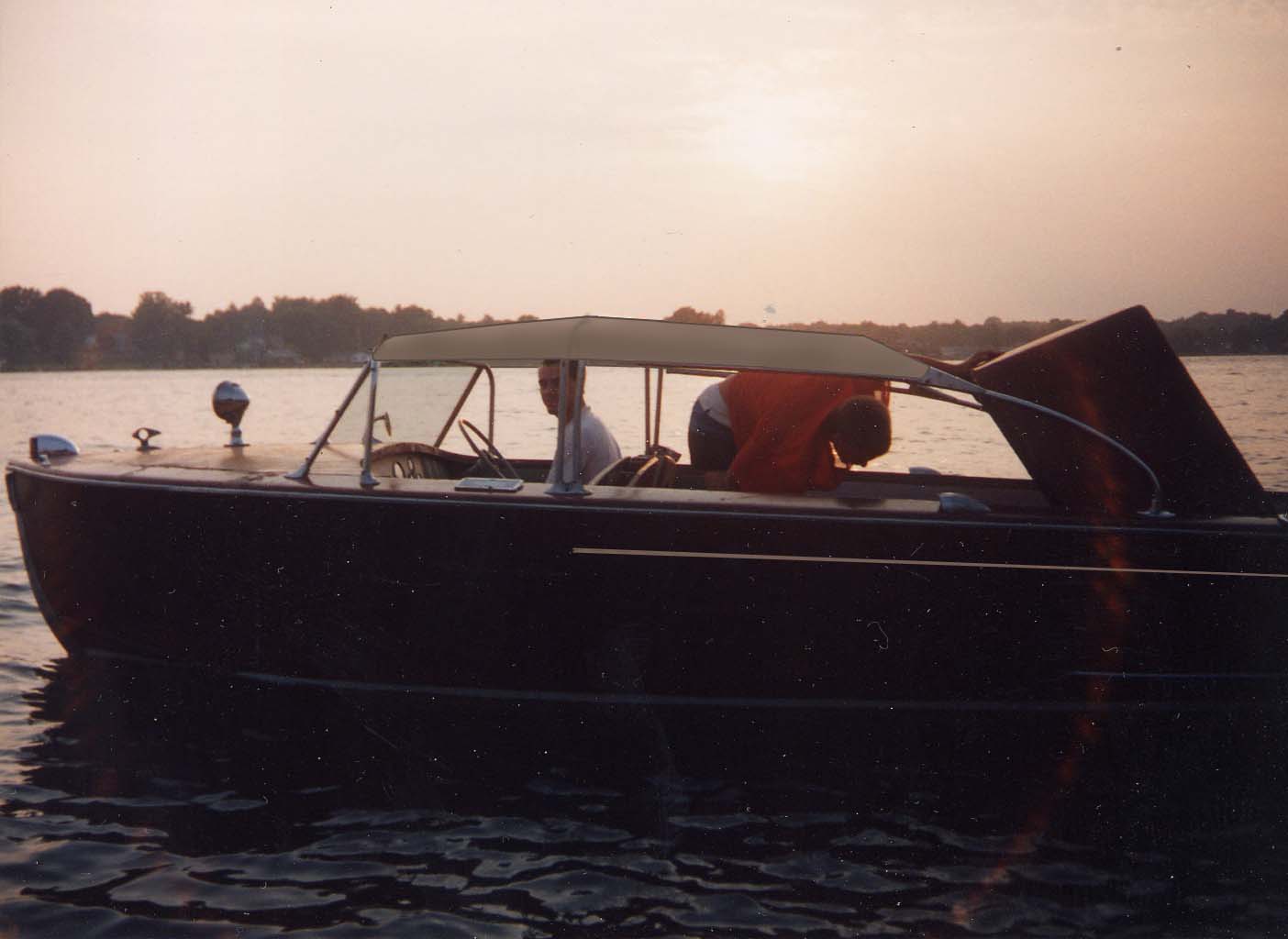 1954 Century Resorter 20' The boat as purchased in 1996. It was bought after not selling at auction in Clayton NY. Tried the engine and it ran excellent so the boat was patched just to see how good the engine really was. We ran the boat but it was in really ugly condition, but it ran great. We never ran a boat in such an ugly condition. The next time this boat sees the water it will not be so ugly.