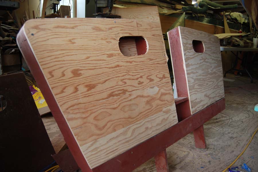 After making sure each frame is centered, angled bracing is added to assure the boat stays inline.