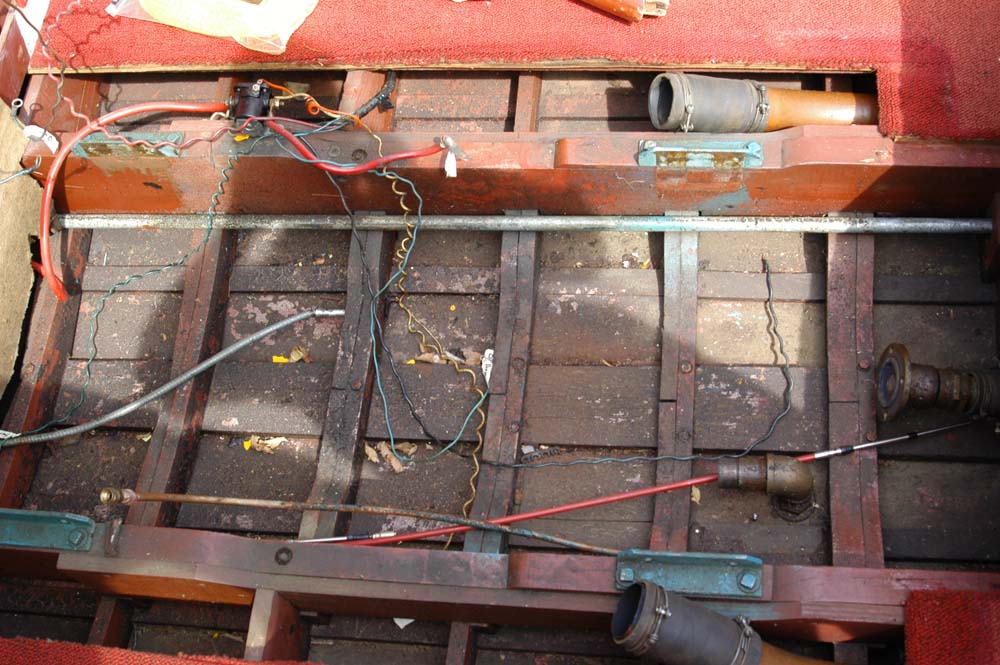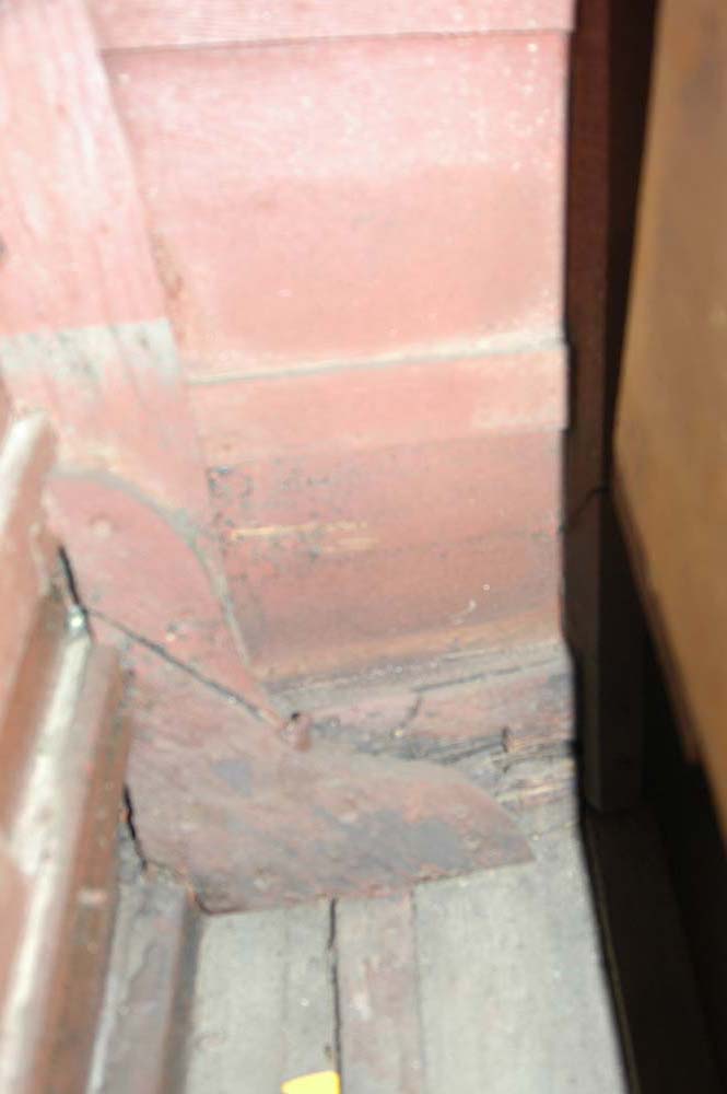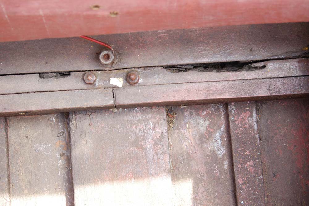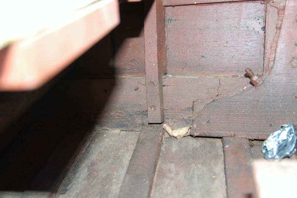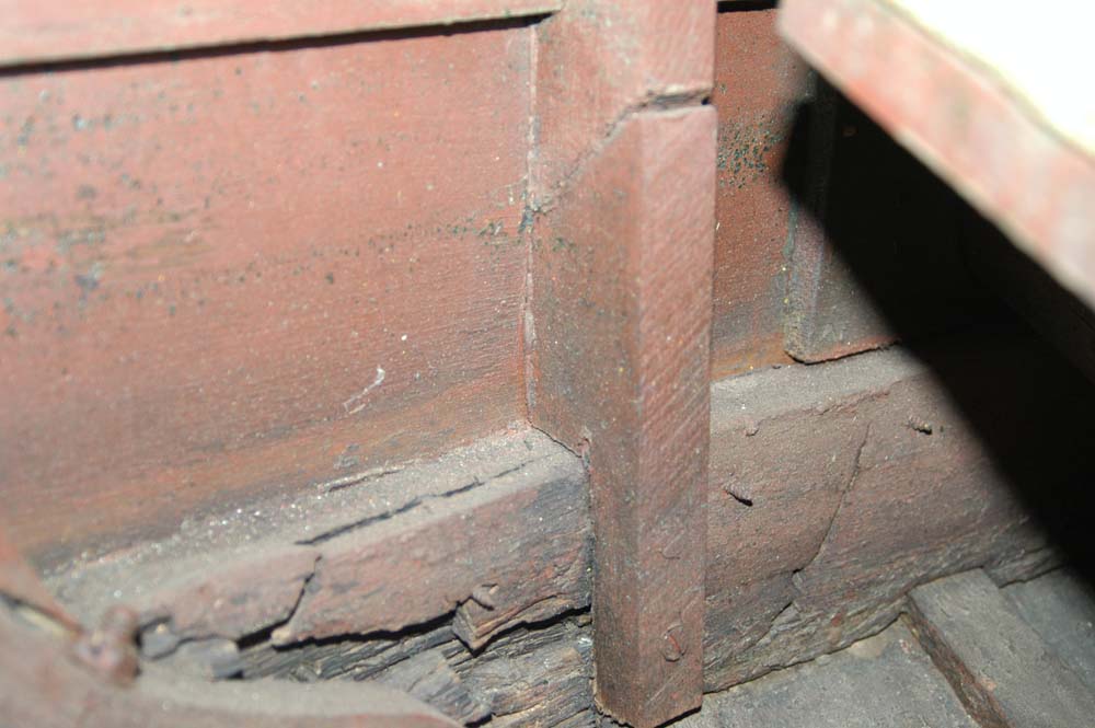 Closer look at transom frame rot. Also note the upright frame was pieced together.
