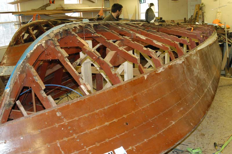 Garboard plank installed bow section. (port)