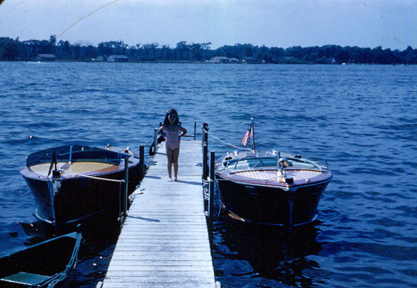 A photo of the boat from 1969. This was the last summer that the boat was used, it is the boat on the right. The other boat is a 1952 Century Resorter 18', "Penny Pooh II" Owned at that time by Jim and Lois Snyder.